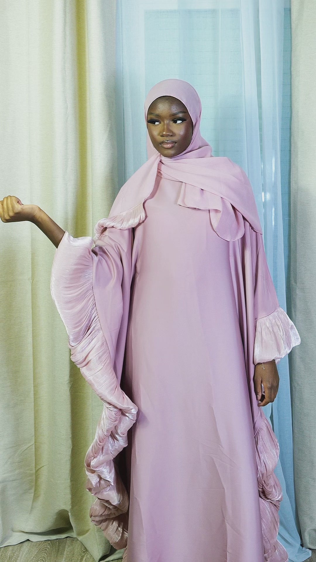 L’Abaya Farasha est une pièce pensée pour allier raffinement et confort. Ses manches bouffantes et subtilement volantées apportent du volume et une touche d’élégance sans en faire trop.